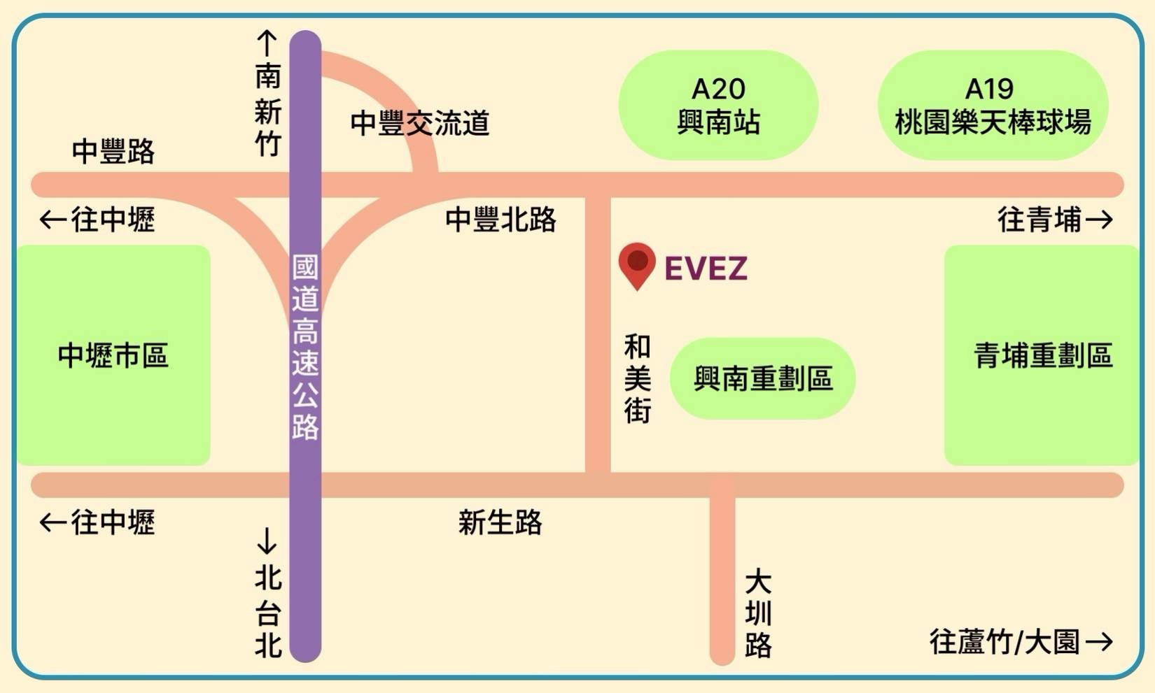 南桃園,鄰國道一中豐交流道